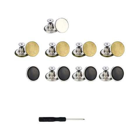 LMOGWL 16ピースDIYジーンズボタン交換セット17 mm調整可能亜鉛合金ズボンボタンスクリュードライバー4色メッキ
