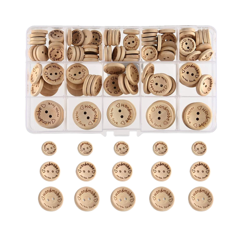 FEPITO手作り木製2穴ボタン長方形環境にやさしい15mm 20mm 25mm縫製工芸品装飾ビーズ付き